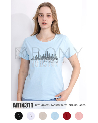 Descripción | Blusa de cuello redondo manga corta con aplicación (HOUSTON) |