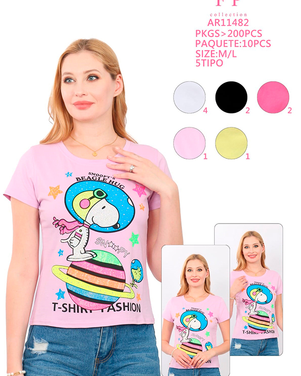 | Descripción | Blusa manga corta con aplicación de caricatura |