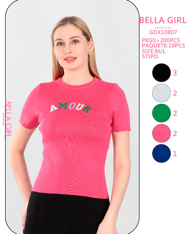 | Descripción | Blusa tejida manga corta con letra bordada |