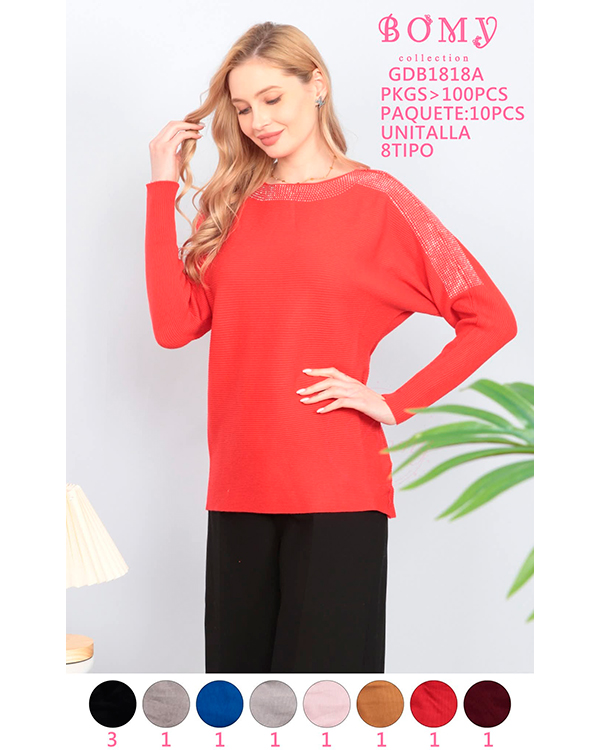 Descripción | Sweater cuello redondo con aplicación de brillo |