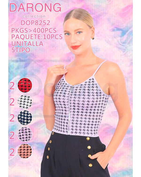 | Descripción | Top de tirante, estampado con cierre |