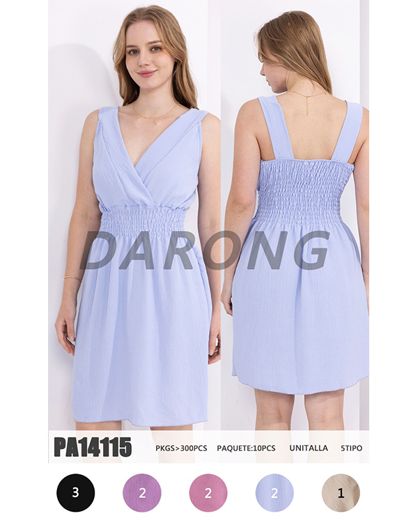 Descripción | Vestido corto de tirante ancho con resorte en cintura |