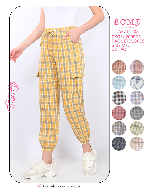 Descripción | Pantalon cuadriculado de cargo, con puño |