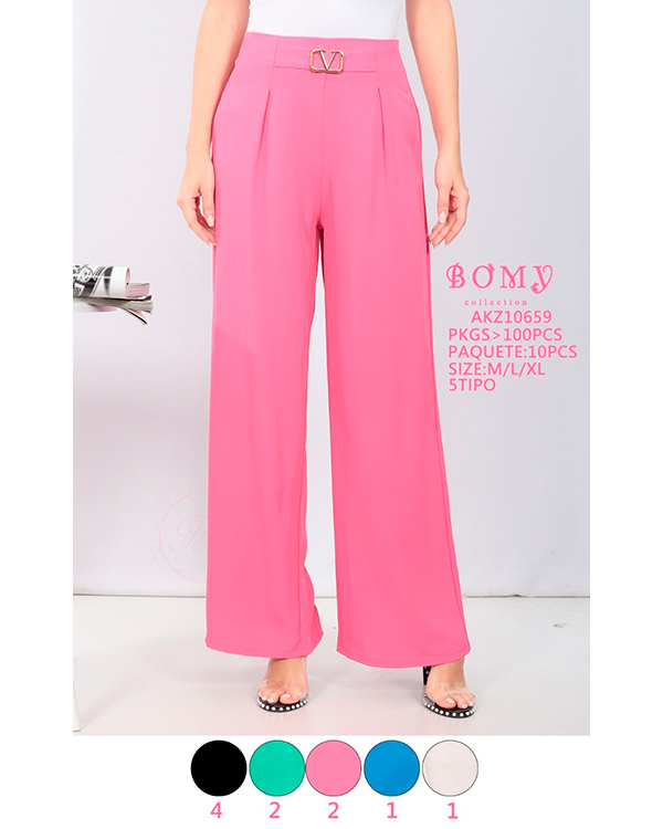 Descripción | Pantalón liso acampanado, con detalle en cintura |