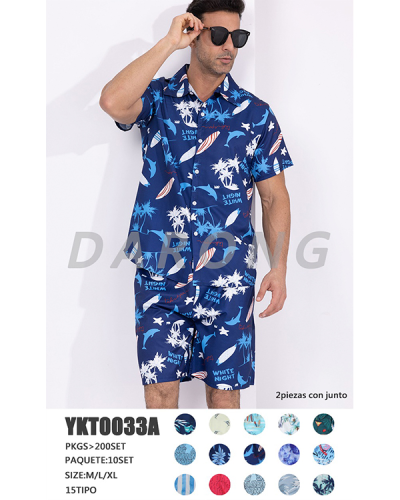 Descripción | Conjunto para caballero de short con camisa tipo playero |