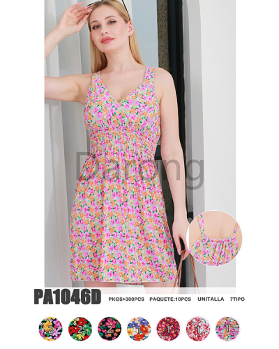 Descripción | Vestido corto con estampado floral y resorte en cintura |