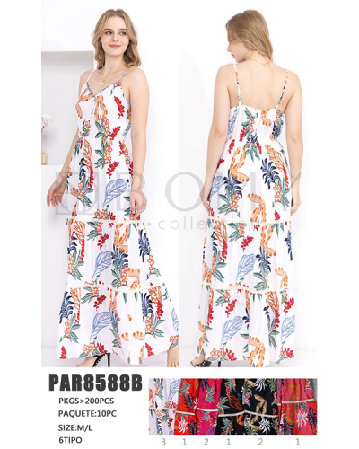 Descripción | Vestido largo con estampado floral de tirante delgado |